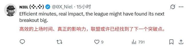 NBA官方此前晒出了杨瀚森季前赛的表现集锦和场均数据,并且写道:“杨瀚森季前赛表现抢眼!”,这一集锦和场均数据,立刻引发美网友热议。