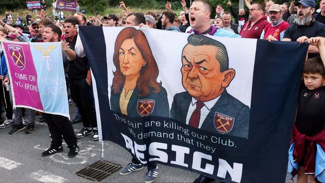 英媒:西汉姆球迷抗议俱乐部主席,对阵小蜜蜂的比赛缺席2万人
