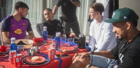 阿劳霍是球队中积极推动团体活动的领袖之一,拉菲尼亚在社媒上分享了聚餐的多张照片,照片中可以看到球员们围坐在蓝红色的桌布旁,氛围轻松友好。照片中有一个有趣的细节:佩德里穿着训练服出席,说明他仍在进行伤病恢复,而其他球员则穿着休闲装。