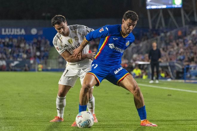 昨天巴萨先赛压哨绝杀赢球,暂时超过皇马登顶,皇马今天作客阿方索佩雷斯球场,必须得拿下赫塔菲,才能再超过巴萨夺回榜首。开场后皇马就反客为主展开猛烈攻势,第7分钟,皇马左路快攻,维尼修斯拿球推进精妙直塞,姆巴佩禁区前沿接球突入禁区获得半单刀良机,只不过姆巴佩未能把握机会,大力推射被门将索里亚奋勇扑出。2分钟后皇马几乎一样的进攻,姆巴佩还是禁区前沿接球,晃开回防2人后大力低射,皮球几乎是擦着远端门柱外侧出了底线。