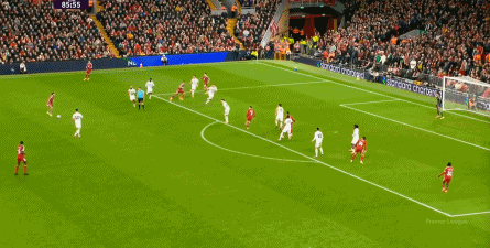之后的利物浦也可以很轻松地打穿曼联的外围防线,除了最后一传稍差,加上曼联球员充分调动身体的因素,实际上利物浦距离扳平比分不算遥远: