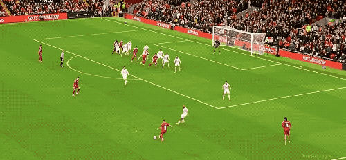 第32分钟,利物浦球员加克波边路传中,皮球打在门柱内侧,又弹出来了。