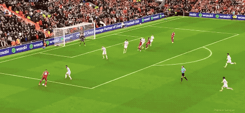 上半场结束,这是两队在安菲尔德的第100次交手,曼联暂时1-0领先。