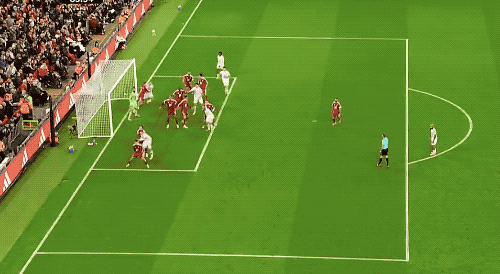 第13分钟,利物浦形成了首次射门,萨拉赫任意球传中,范戴克头球攻门顶偏。